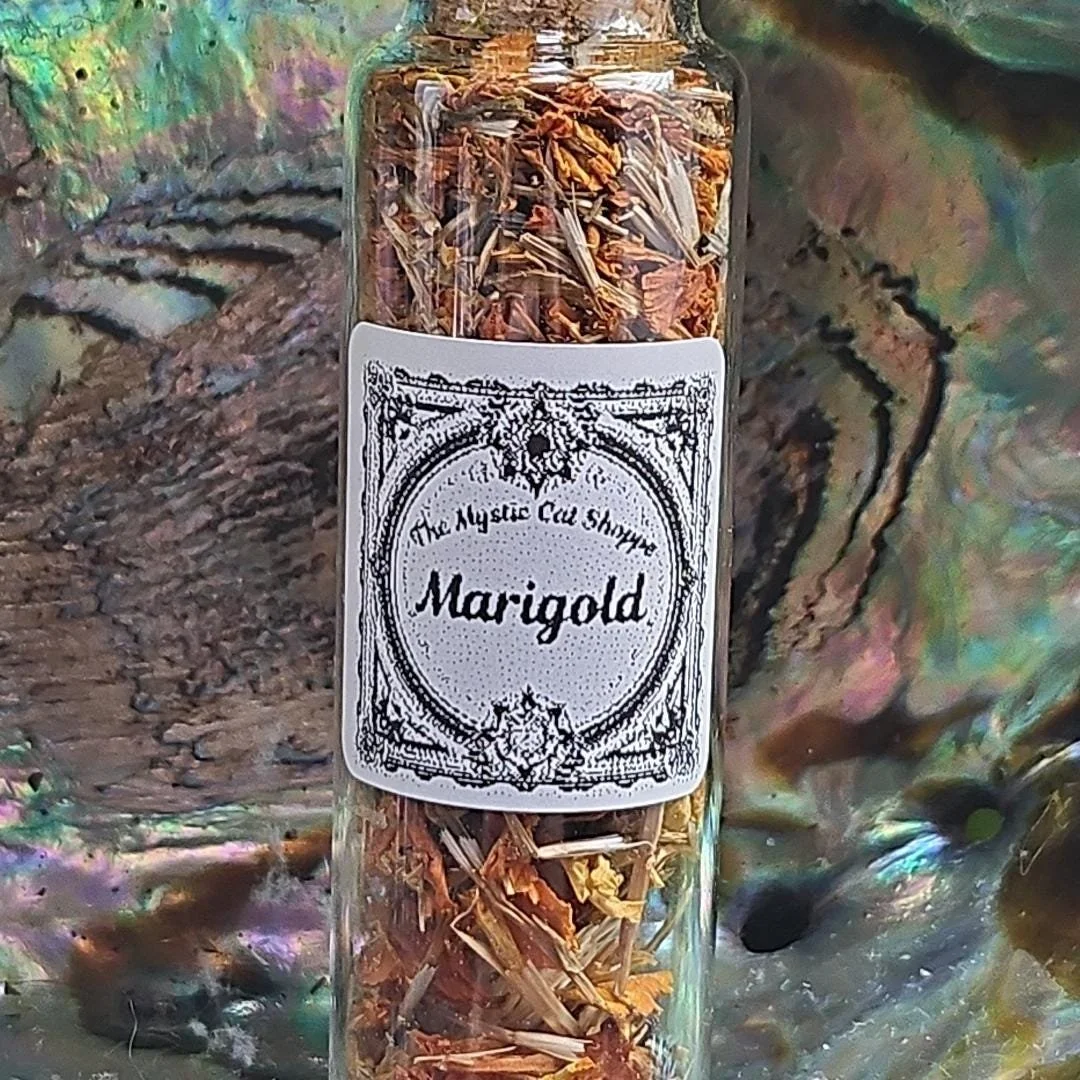 Handmade by witches for witches. Marigold has long been used in folk magic as a flower of protection, joy, and spiritual guidance. Traditionally, it is worked with to guard spiritual space, uplift the spirit, and encourage clarity and guidance during times of transition or reflection.
